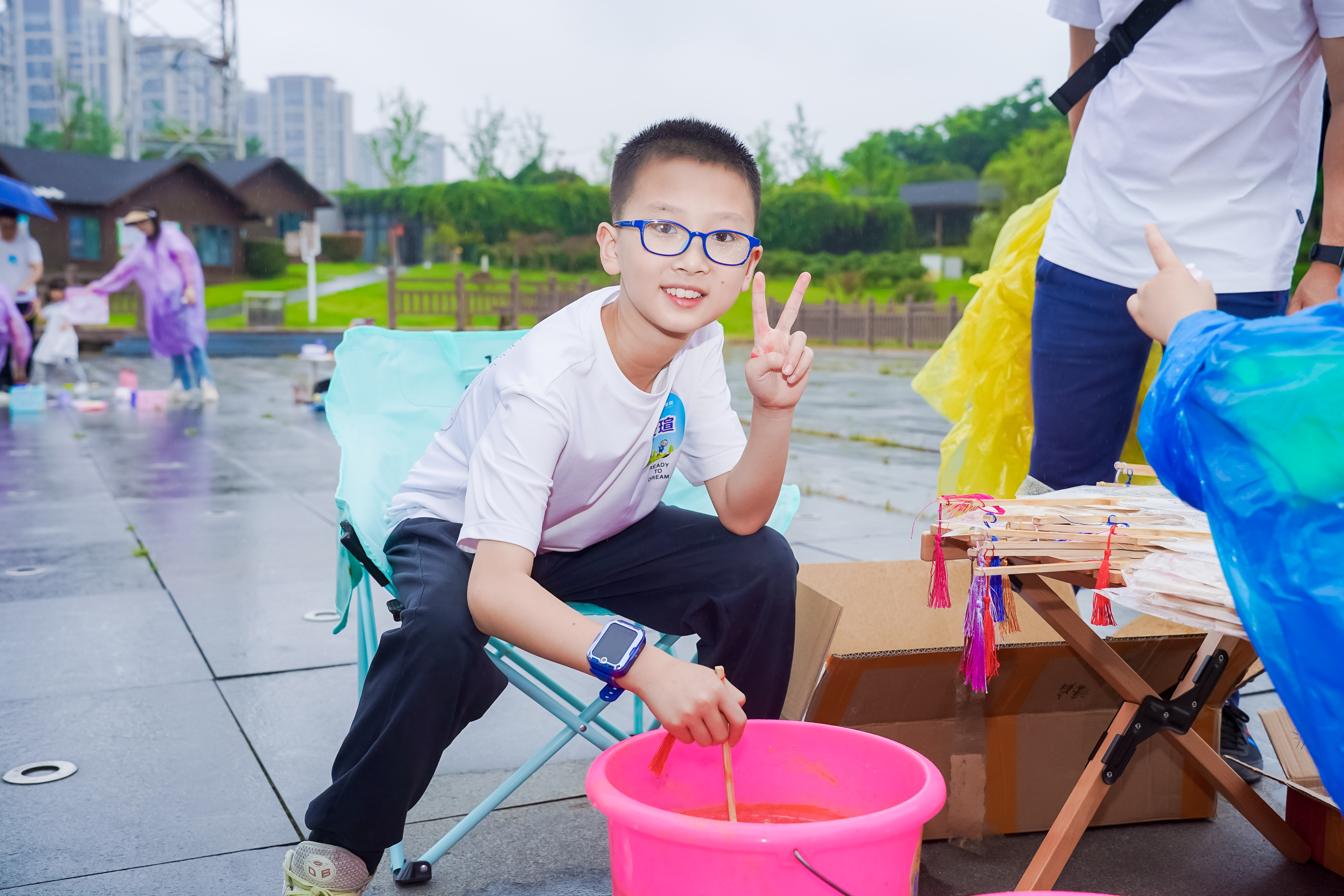 孩子們現(xiàn)場(chǎng)體驗(yàn)漆扇手作,了解漆藝扇子制作的傳統(tǒng)工藝,一起感受色彩流動(dòng)的美學(xué),感受非遺工藝的獨(dú)特魅力。他們充分發(fā)揮自己的創(chuàng)造力,讓彩漆自由飄散在水面上,水波蕩漾間,似星辰、似江海、似山川,遐想無(wú)限,漆染出一把把獨(dú)一無(wú)二、充滿個(gè)性的漆扇。